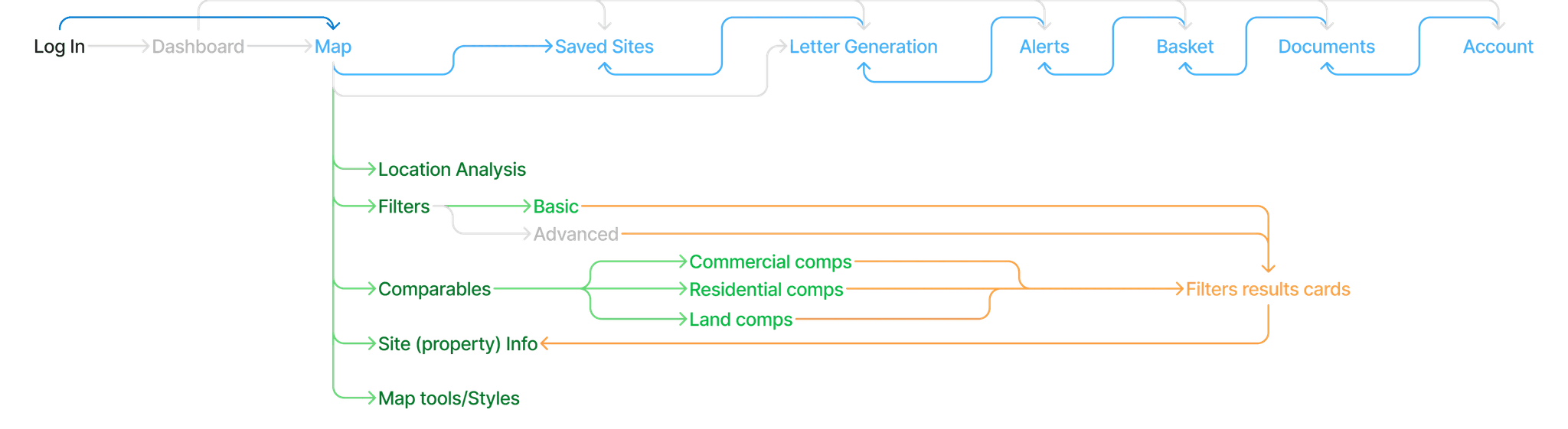 I analysed direct competitors (LandTech, LandHawk, CoStar, SearchLand) and established platforms (Rightmove, Zoopla) to identify usability patterns and differentiation opportunities that could inform our design decisions.